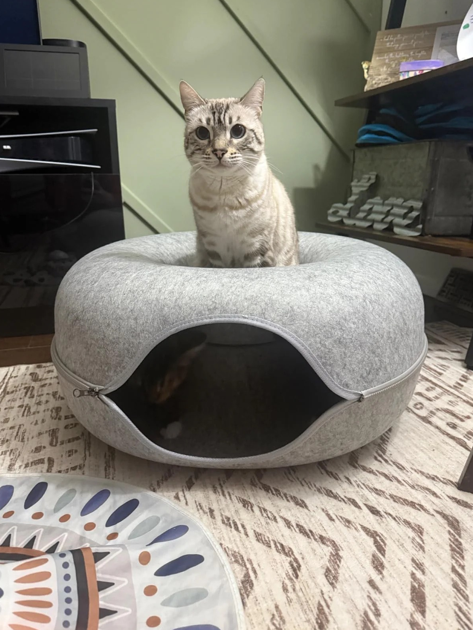 With a built-in tunnel for play and a cozy, safe space for naps, it keeps your cat happy all day.