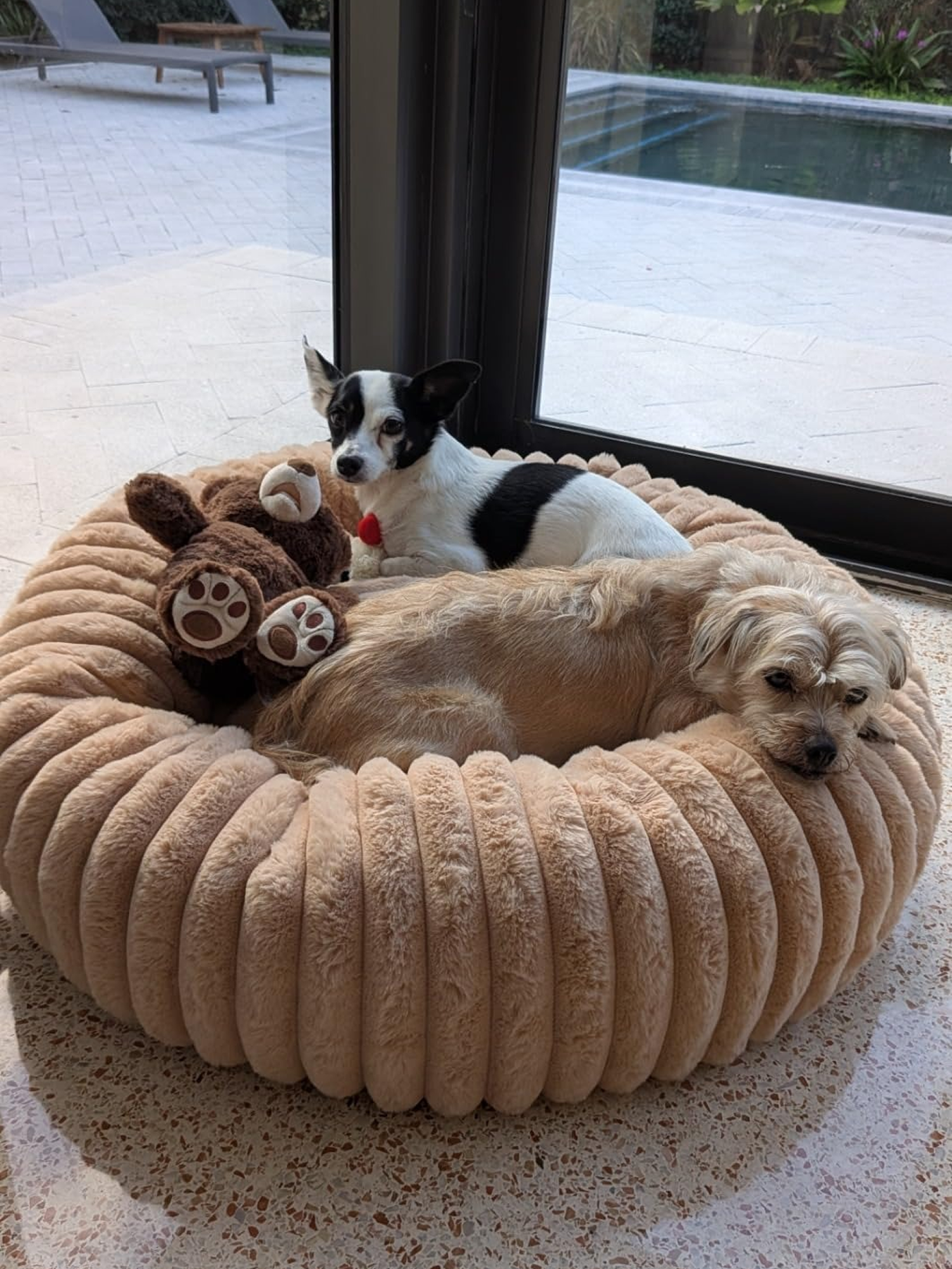 Our luxurious donut dog bed wraps your pup in comfort and security, making it perfect for dogs who love to curl up and snuggle close. The raised edges, ultra-soft faux fur, and plush lining create a cozy sanctuary where they can unwind and fall into peaceful, satisfying sleep.
