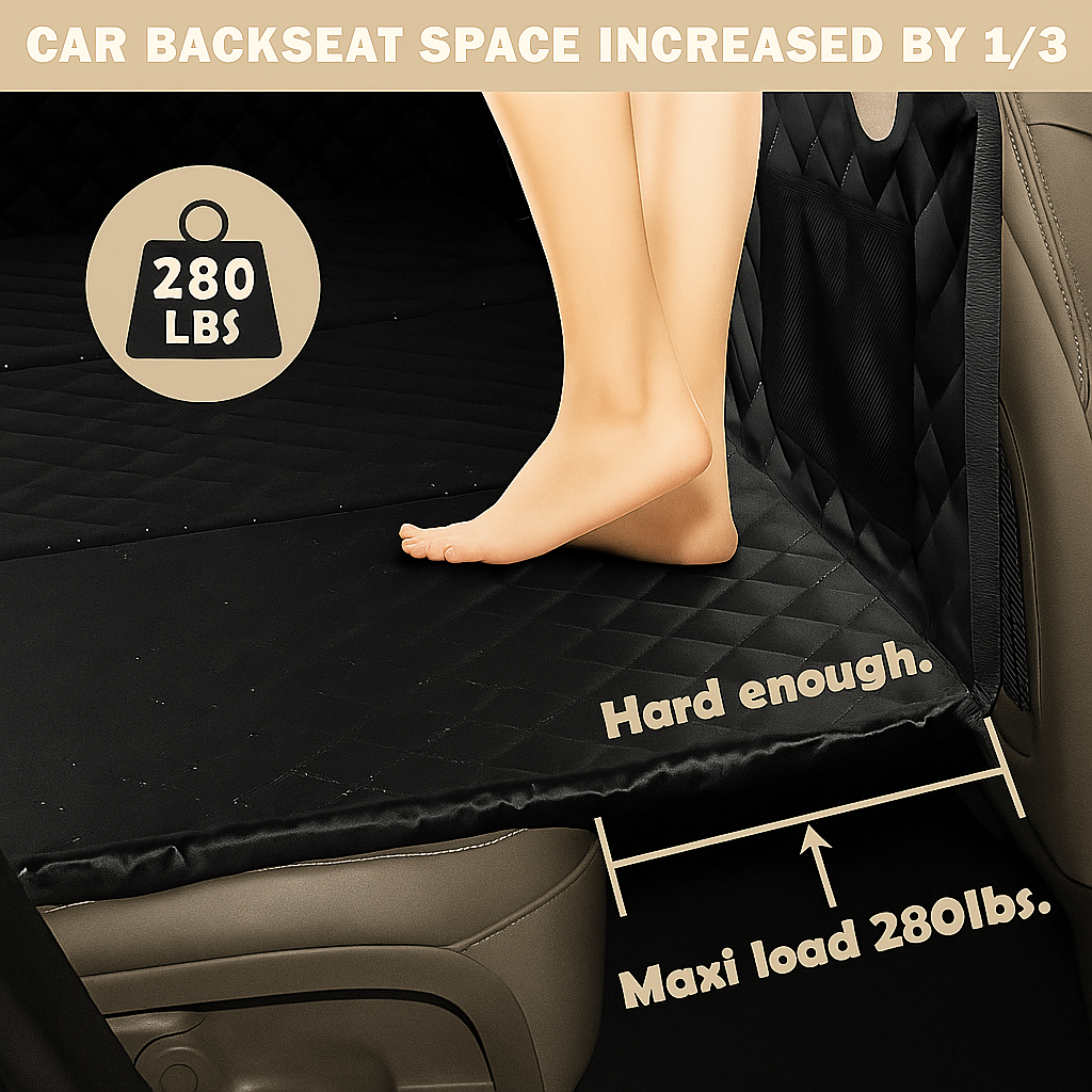 This seat cover adapts effortlessly to any vehicle — cars, trucks, or SUVs — thanks to its adjustable straps and flexible fold-out design. With a reinforced 280 lb weight capacity, it can comfortably accommodate up to three large dogs at once.
